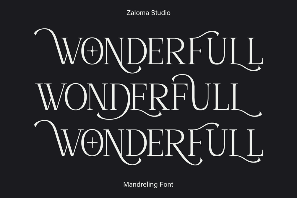 Mandrèling is a modern serif font with an elegant, classic touch. Designed by Zaloma Studio, it features graceful high contrast strokes, complete with decorative alternates and ligatures. Its tall, curved shapes give a luxurious, romantic, and feminine feel — perfect for branding, editorials, invitations, and premium packaging.